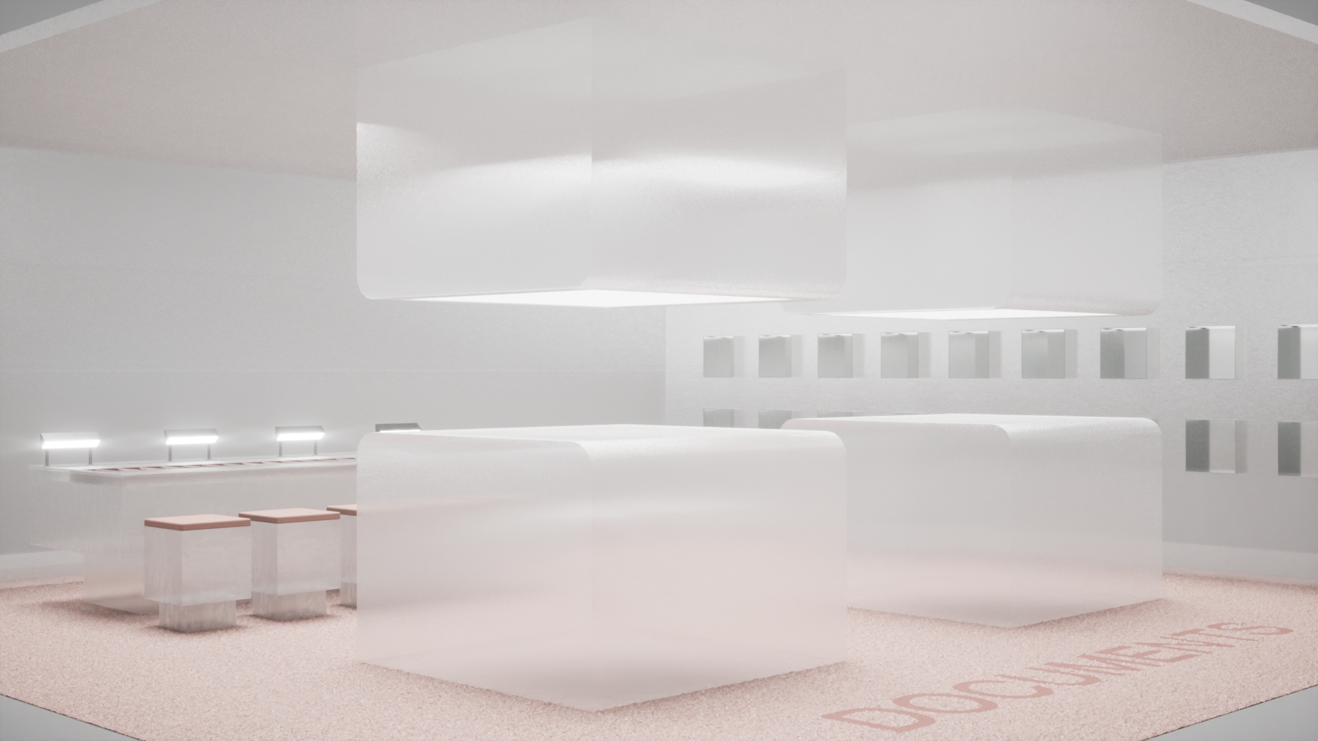 The concept is titled “LIGHT AS FEATHER”, a retail installation for Chinese fragrance house DOCUMENTS. The environment is built entirely from frosted translucent materials: from the exterior facade to the interior bar, shelving, and product displays. At first glance, the space appears nearly monochromatic and weightless; however, a system of refined recessed lighting subtly washes the room in three tonal directions, each reflecting a core note of the FEATHER fragrance: Ylang-Ylang, Lotus, and Oak Moss. The pop-up embraces DOCUMENTS’ signature 禅酷 (Chánkù) “Zen-Cool” minimalism, expressed through cool hues, soft tactility, and a calm, contemporary restraint. The result is a sensory space that feels both ethereal and quietly luxurious, echoing the lightness of the scent itself.